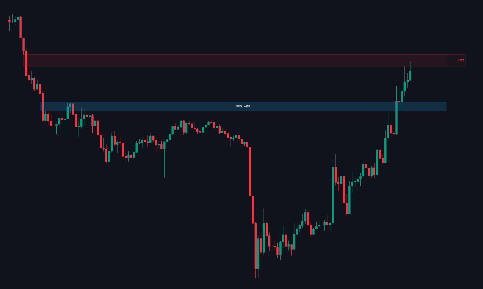 | Show iFVG (Last Broken) | Enables Inversion FVGs. When an FVG is breached by a candle body, the zone "flips" and changes color to signal a trend reversal.                                                |